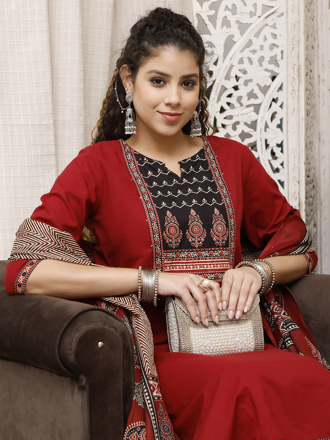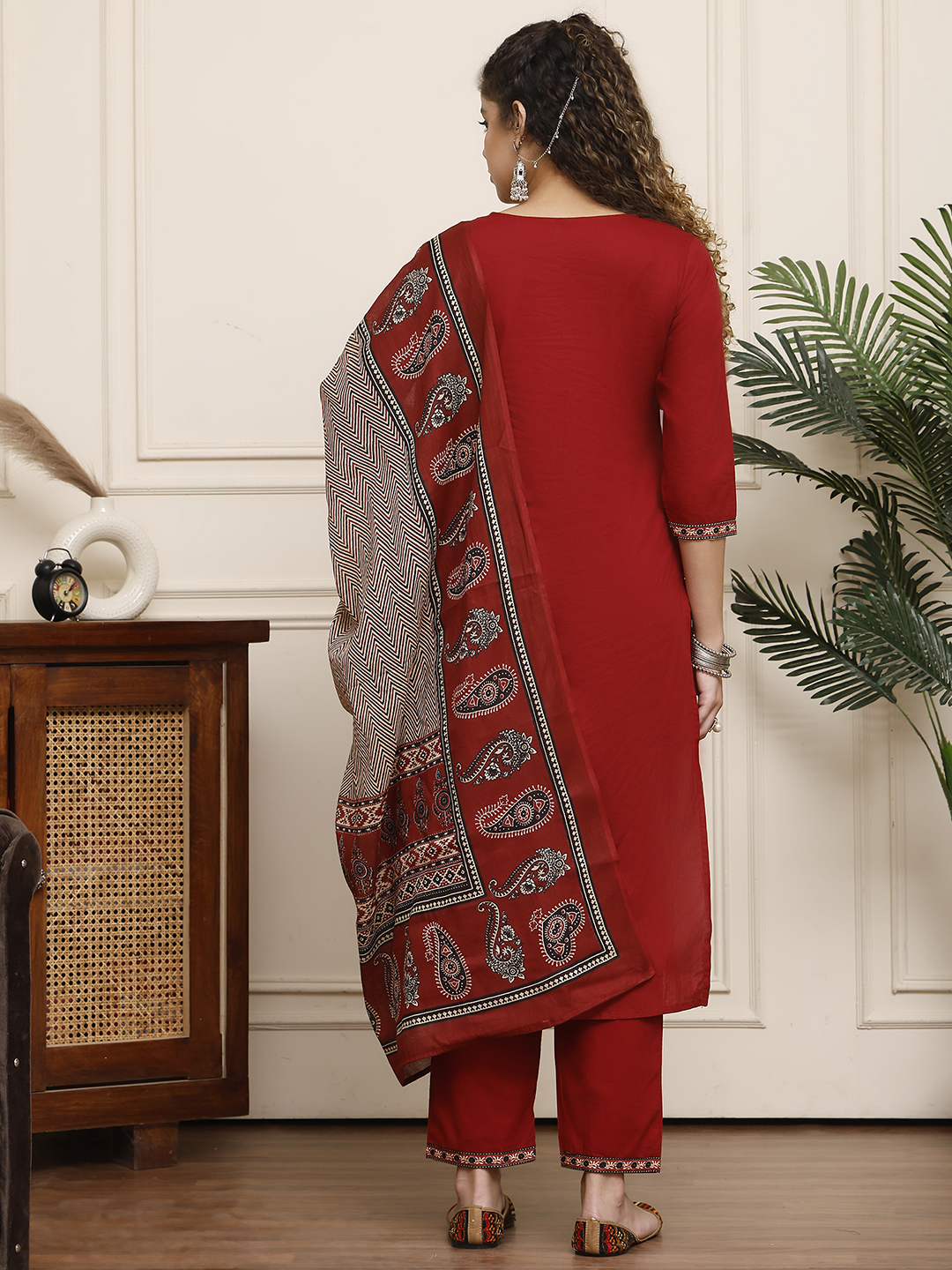 01113 Maroon Pure Cotton 3 Piece Suit Set