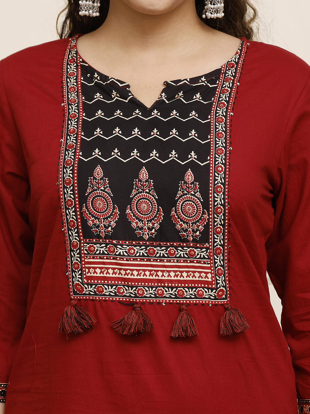 Top Fabric: 100% Cotton, printed + hand work on neck, fully stitched