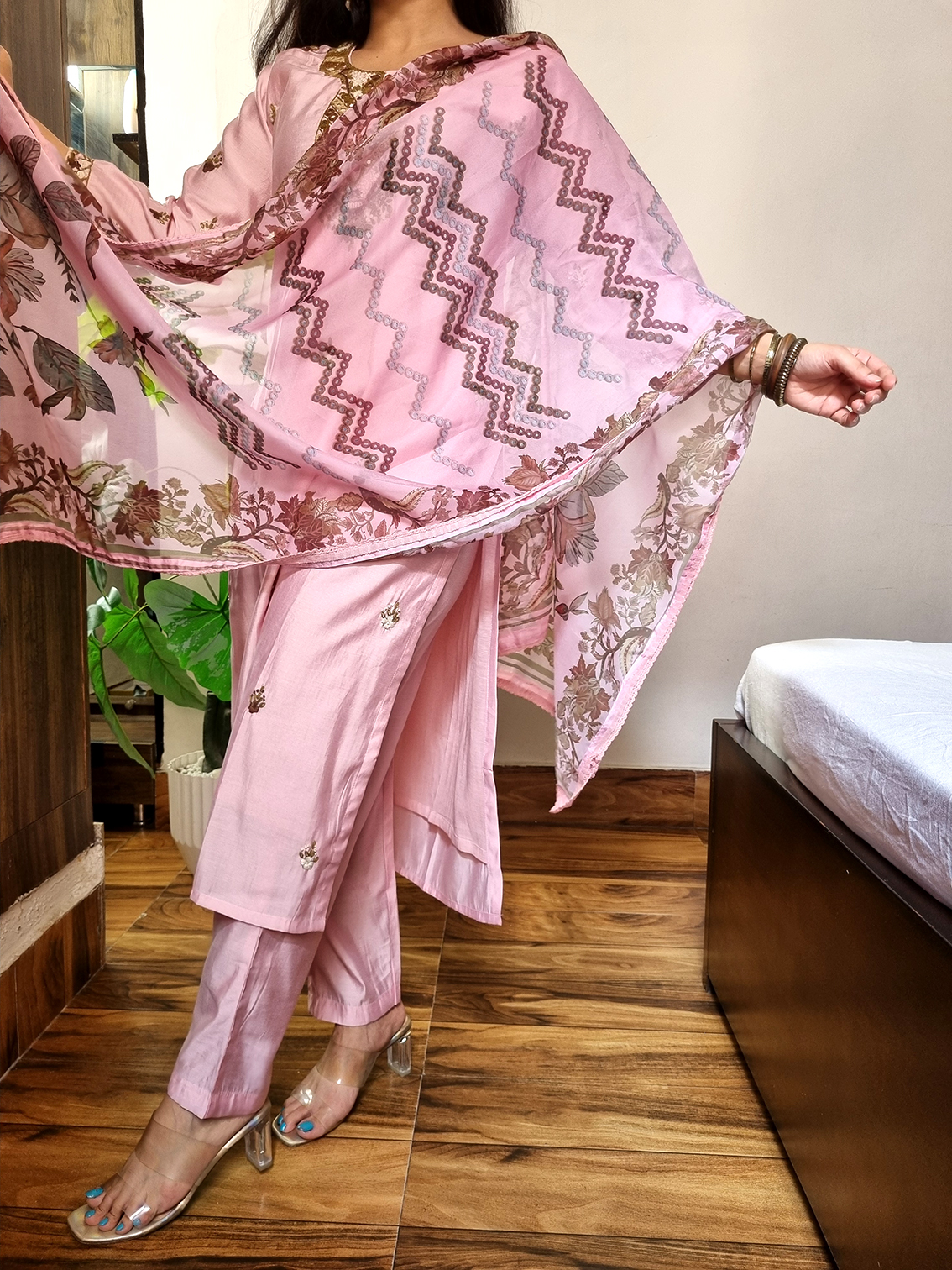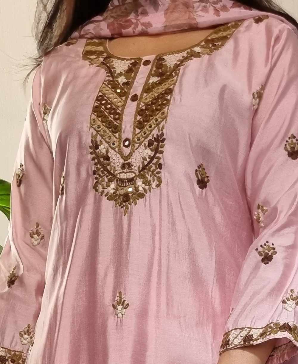 | Name : | 017 Pink roman silk hand embroidered suit set |