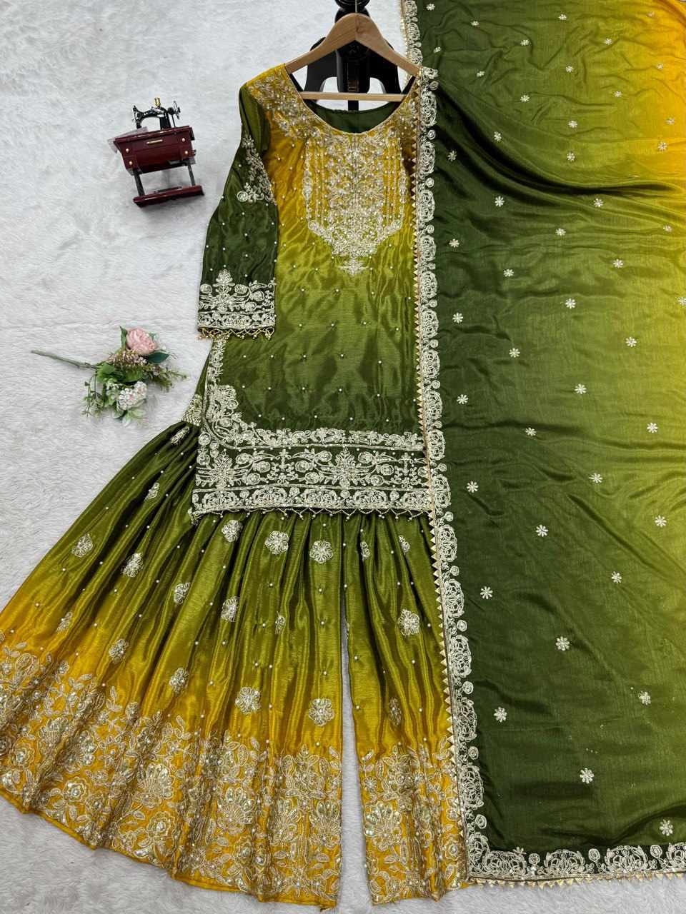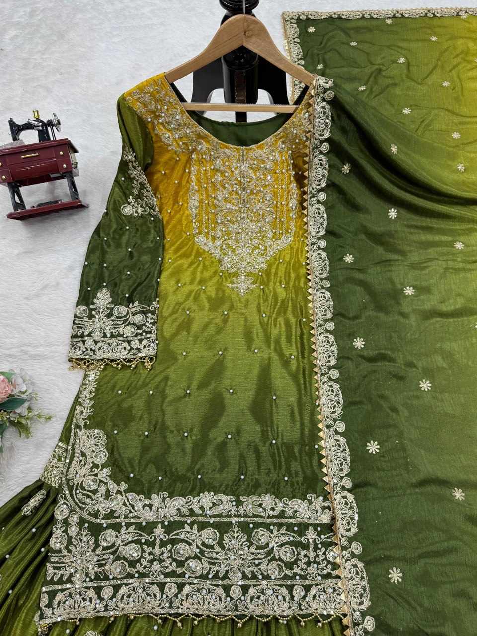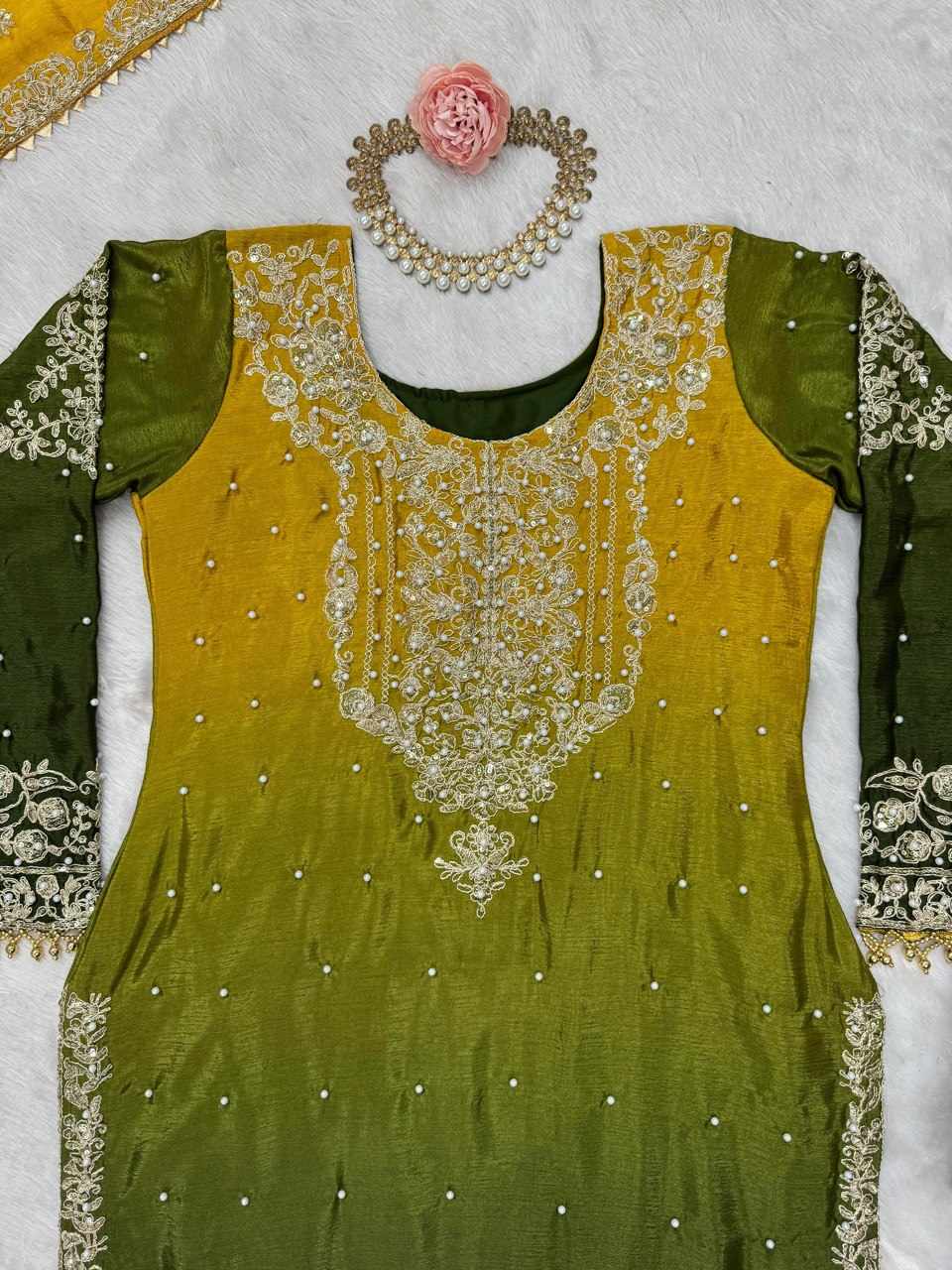 | Name : | KD 1498 Havy Chinon Mustard Designer Suit |