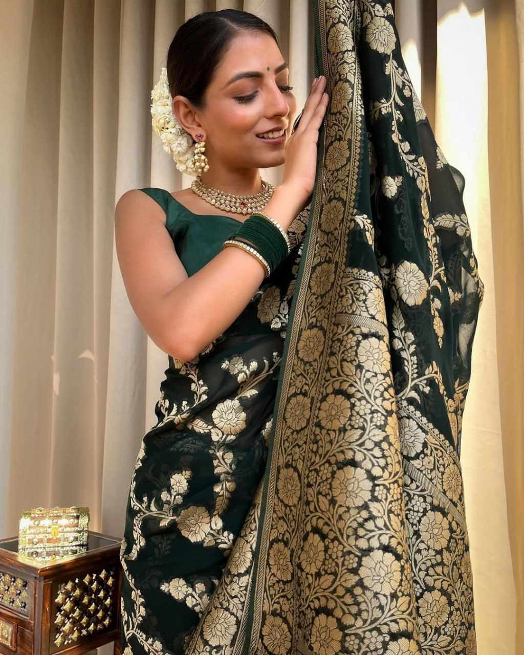 DESIGN : BEAUTIFUL RICH PALLU & JACQUARD WORK ON ALL OVER THE SAREE.