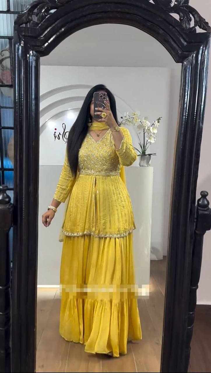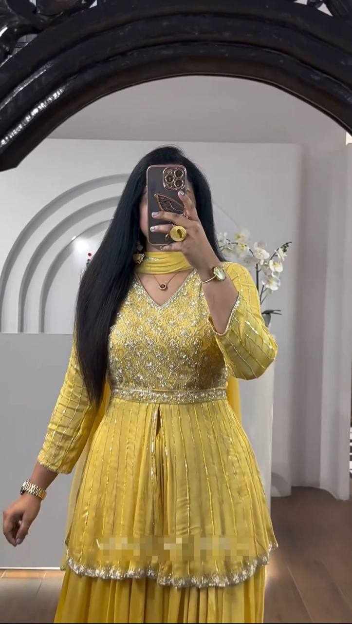 | Name : | Pc 434 Yellow Chinon Sequence Work Lehenga |