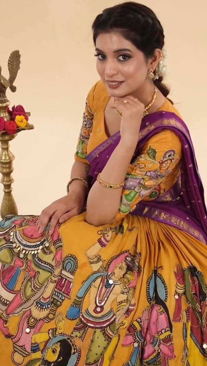 | Name : | Pc 450 Chent Crep kalamkari print Lehenga |