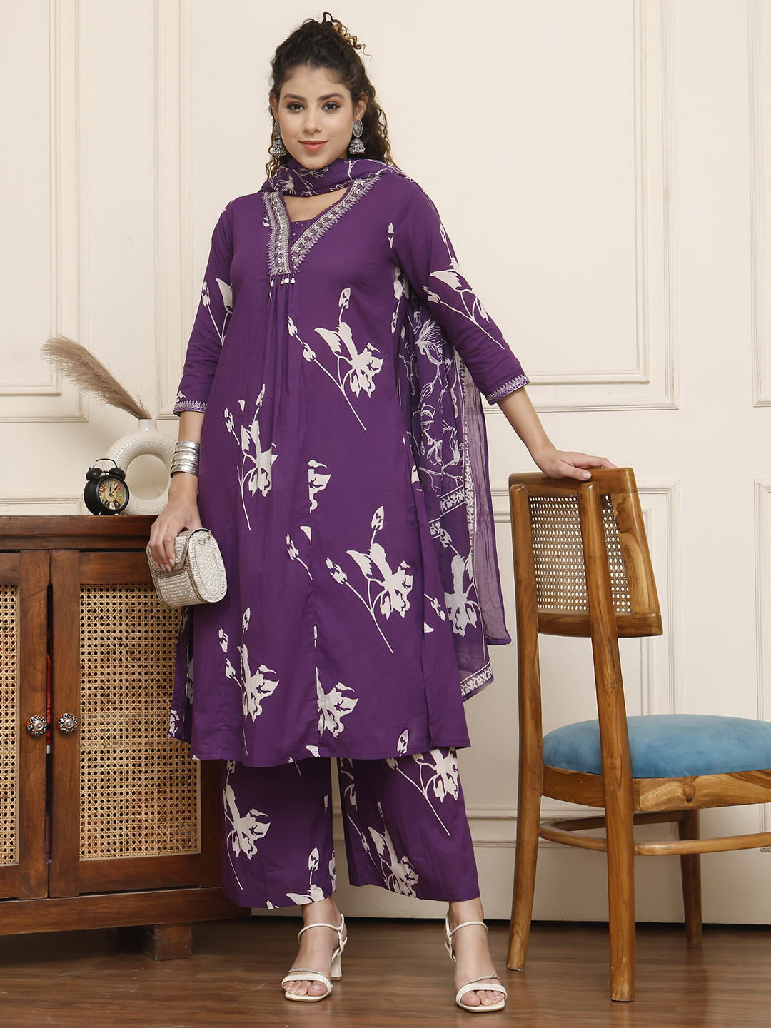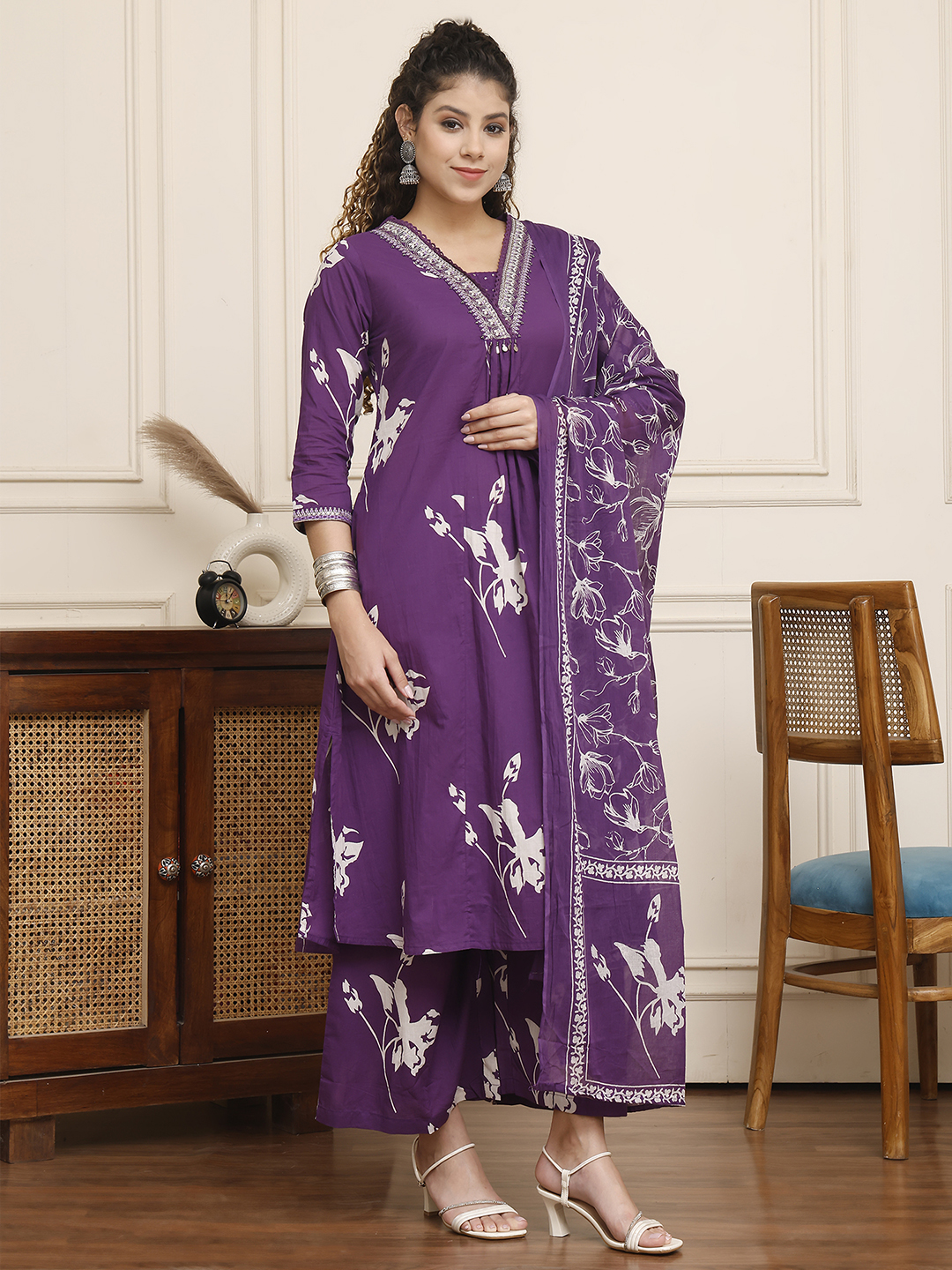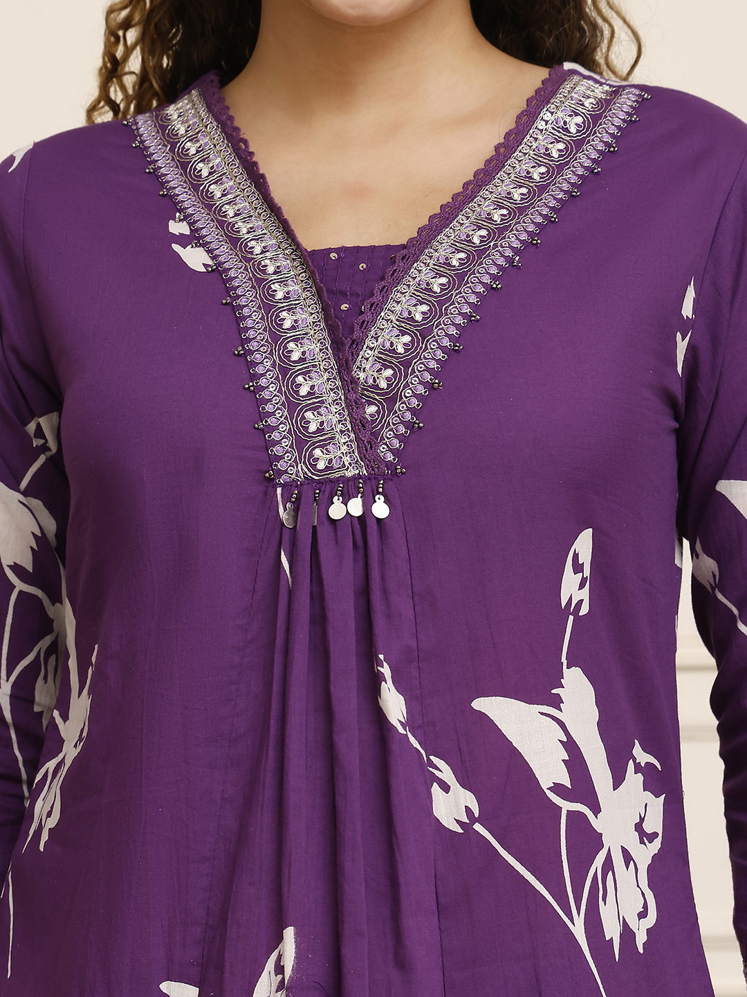 Top Fabric: 100% Cotton, printed + Machine Embroidery and hand work on neck, fully stitched