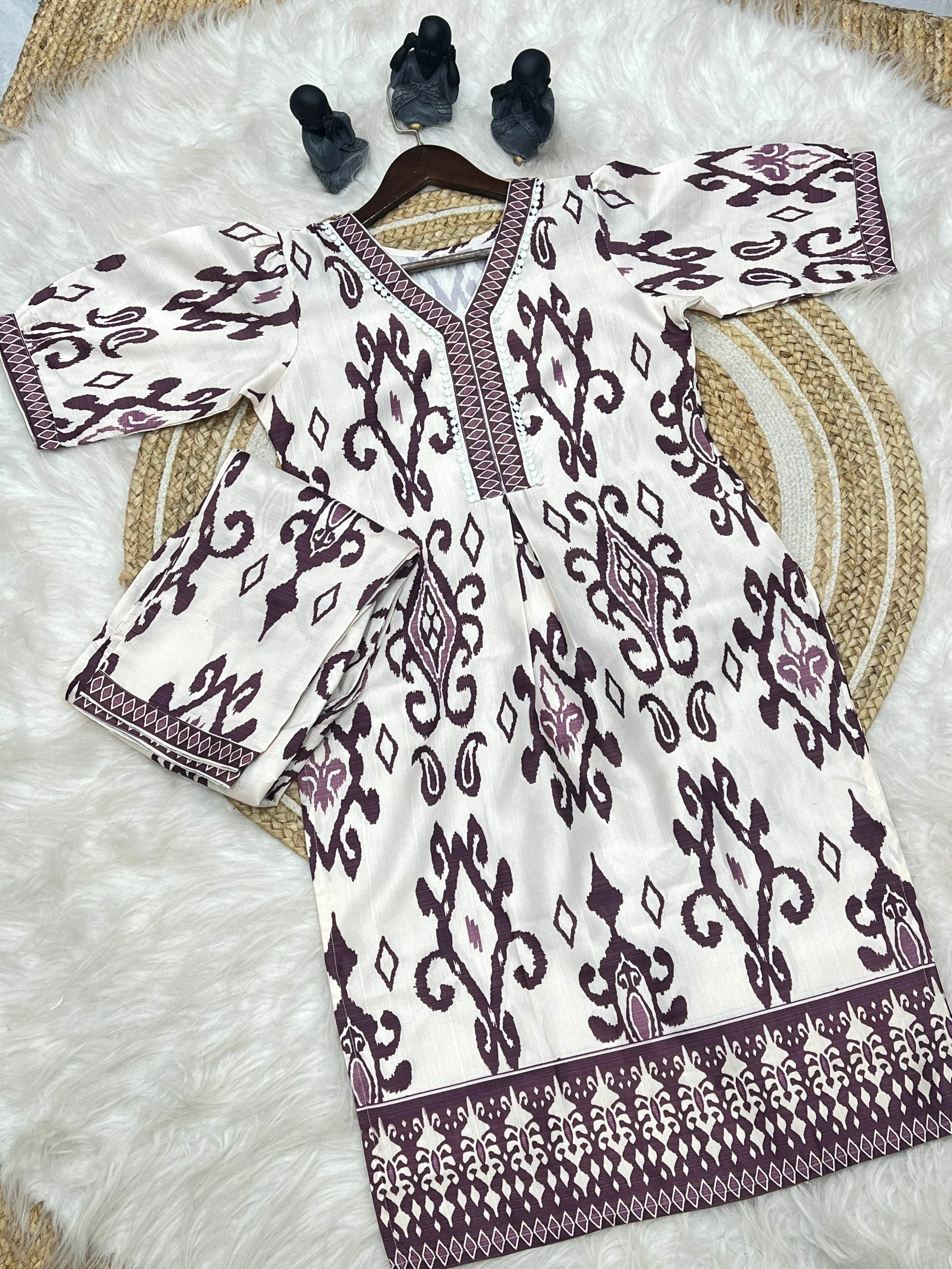 JKWH 998 Pure Fine Cotton Febric Embroidery Work A-line Kurti Set With Pocket