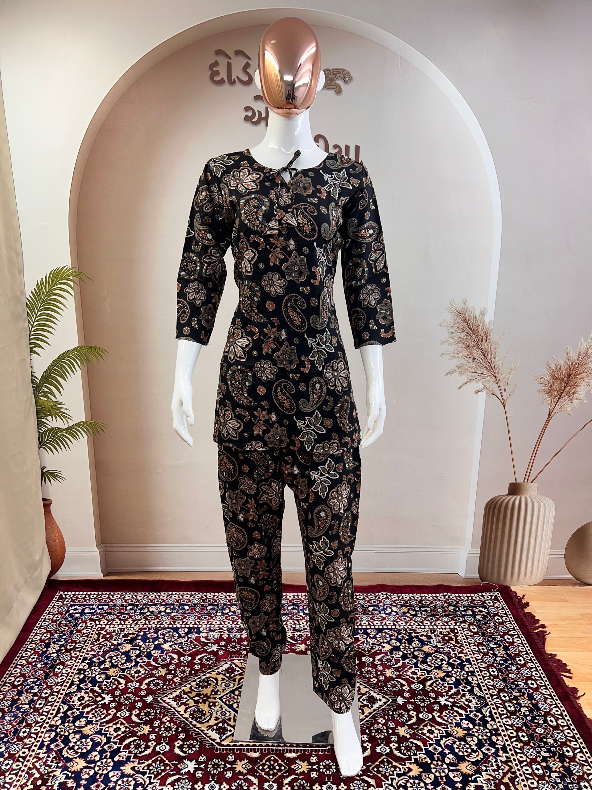 | Name : | WM 24 Black Pure Soft Rayon Cotton Co-ord Set |