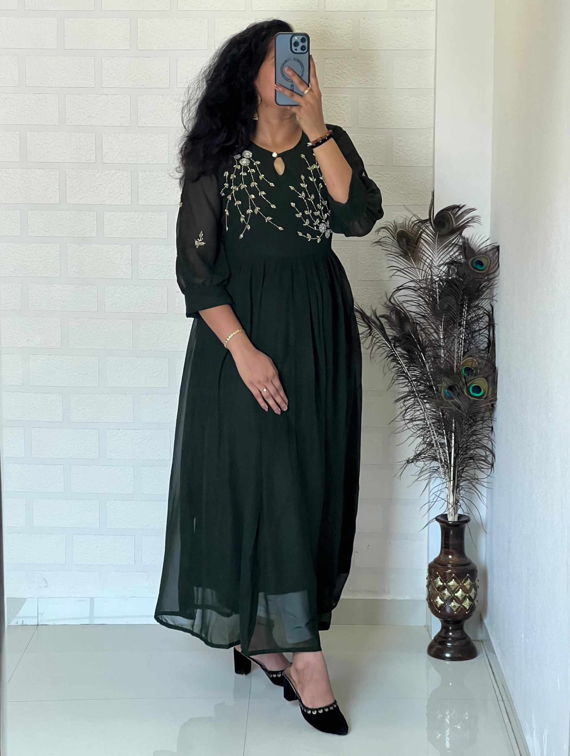 WM09 GREEN BLOOMING GEORGETTE HANDWORK KURTI