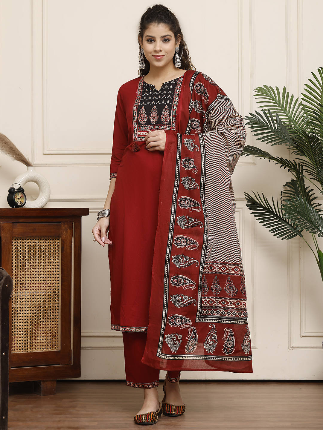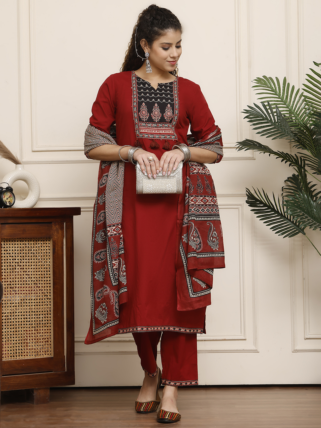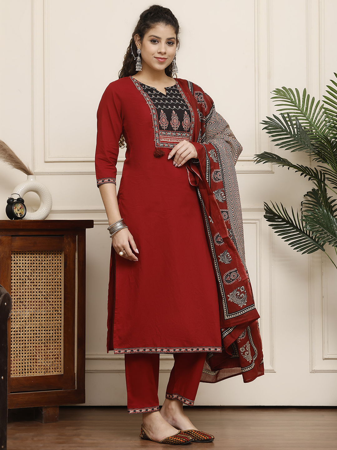 01113 Maroon Pure Cotton 3 Piece Suit Set