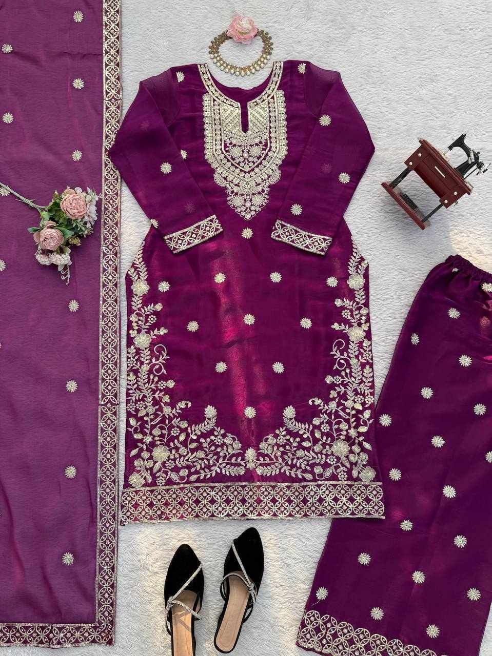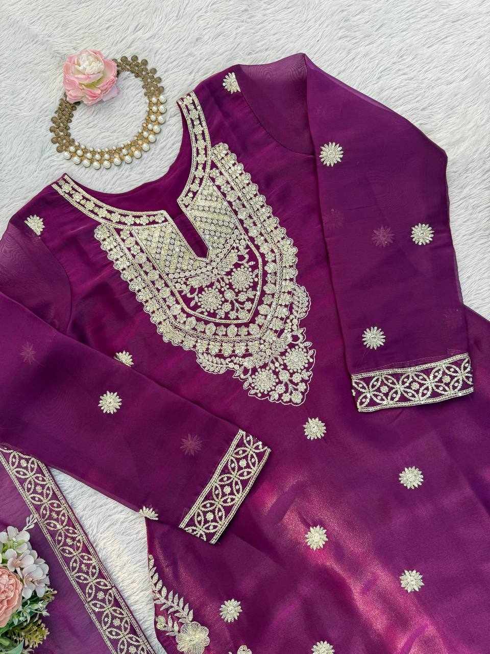 JKWH 997 Pure Fine Cotton Febric Embroidery Work A-line Kurti Set With Pocket
