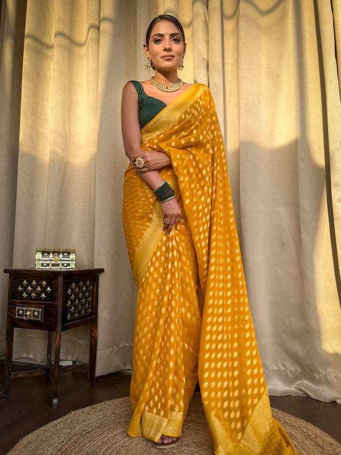 | Name : | KP 5083 YELLOW SOFT LICHI SILK SAREE |