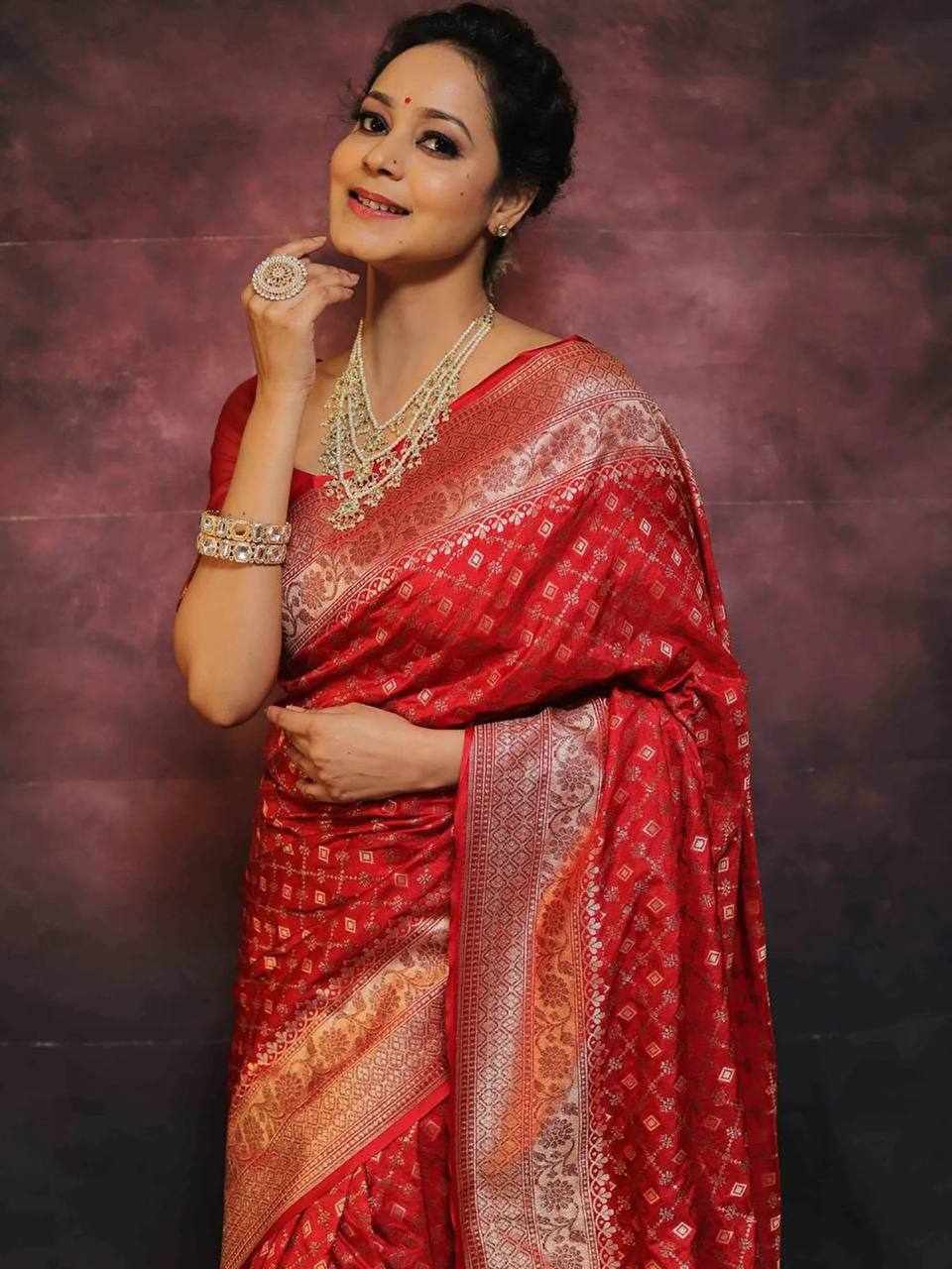 • Work: Elegant Jacquard Weaving Work All Over the Saree