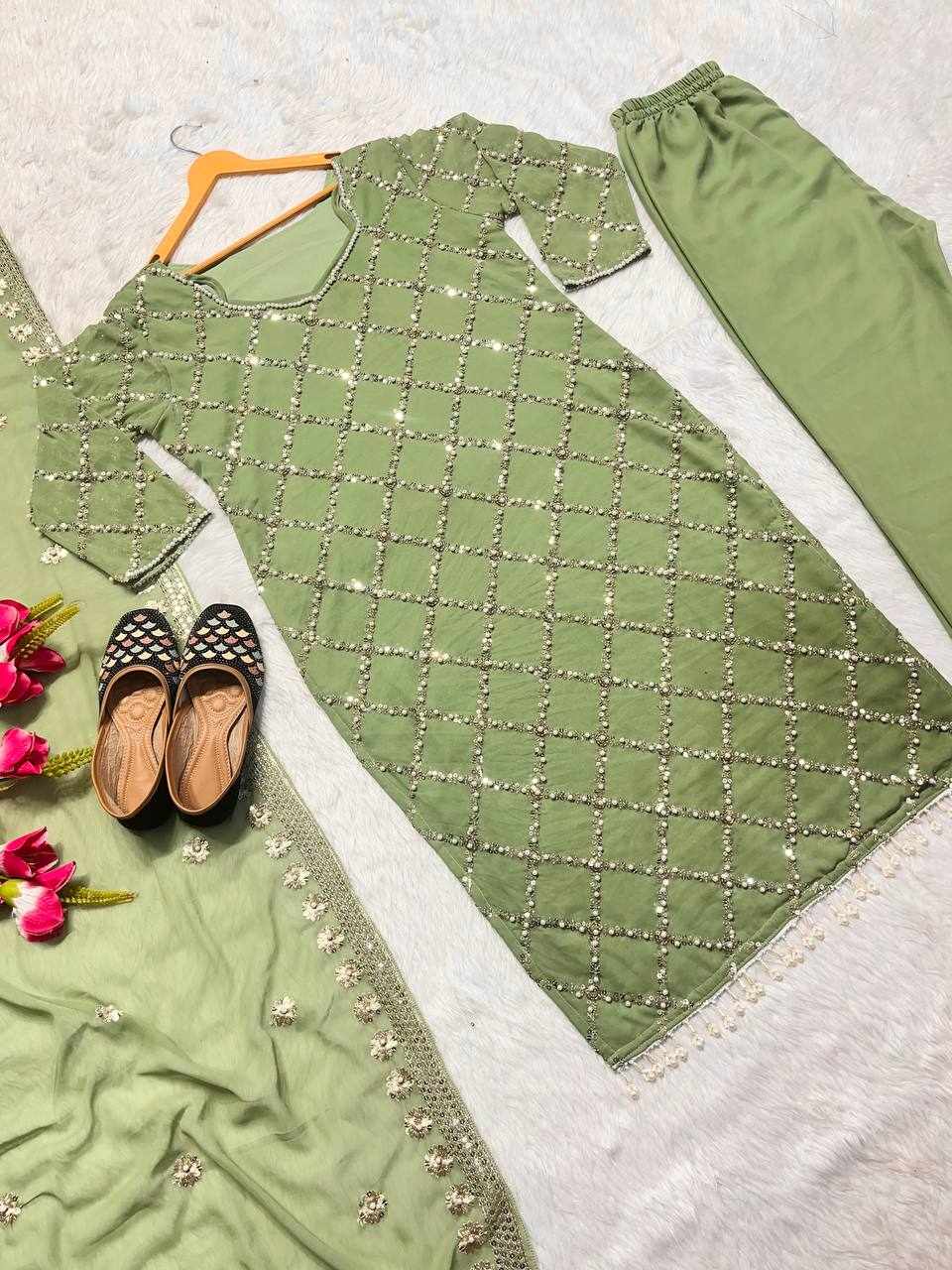 MF 409 New Fancy Embroidered Light Green Dress