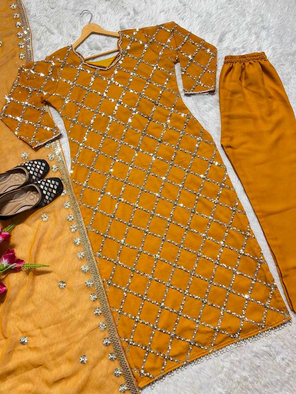 MF 409 New Fancy Embroidered Yellow Dress