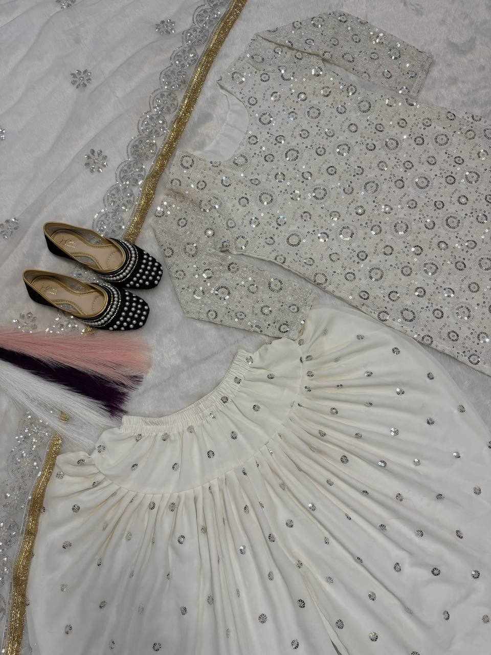 Step into elegance with this stunning Blooming Heavy Faux Georgette Dhoti Salwar Set, beautifully crafted with heavy embroidery sequence work and full sleeves. Perfect for festive occasions, weddings, parties, and traditional functions.
