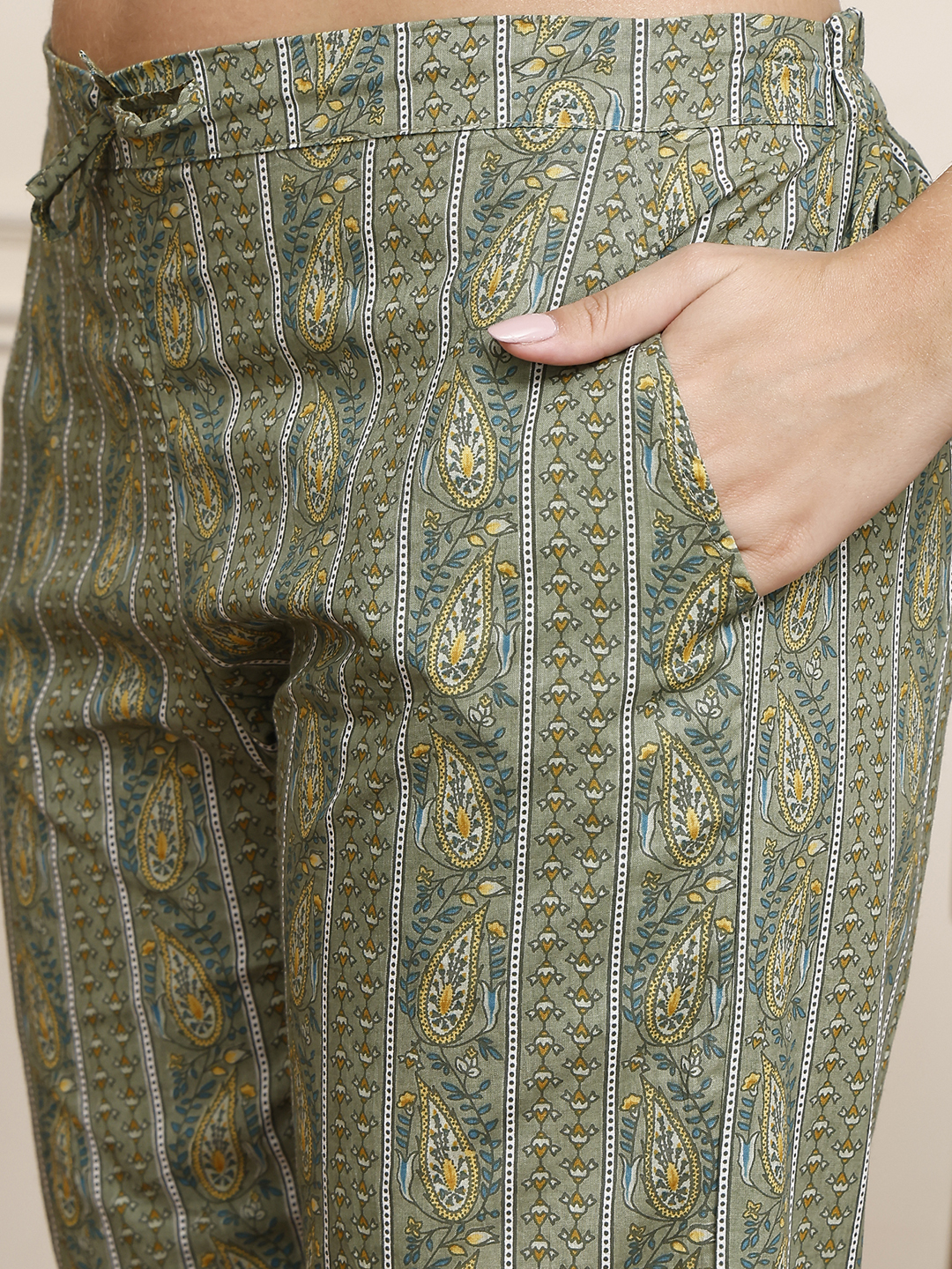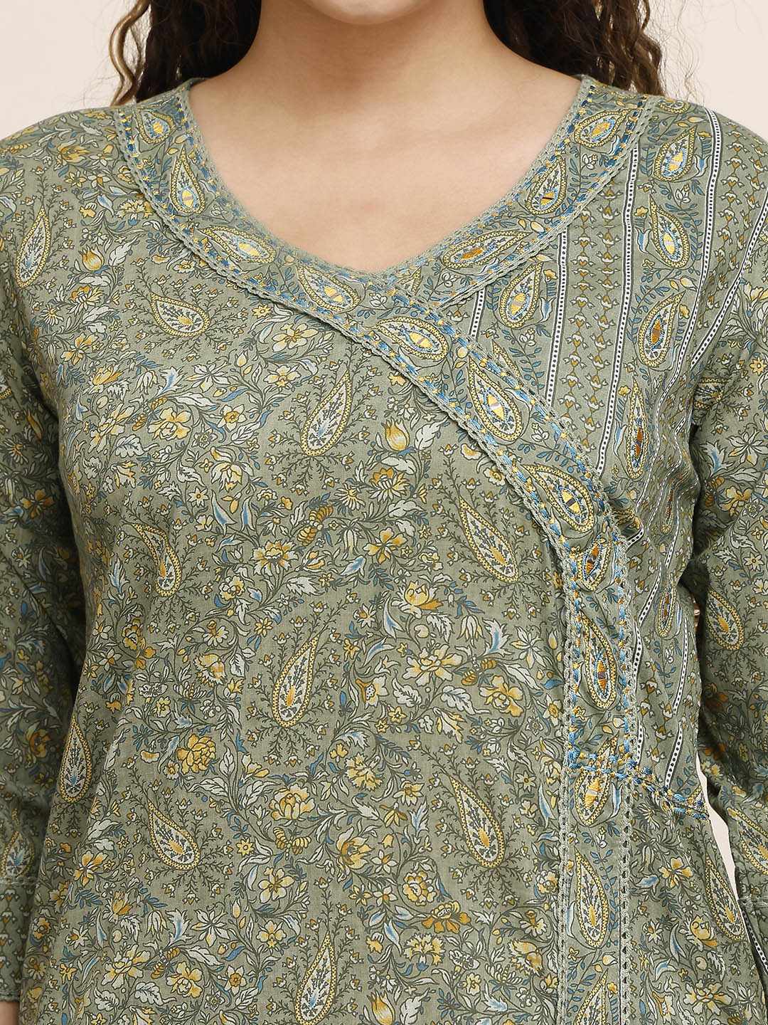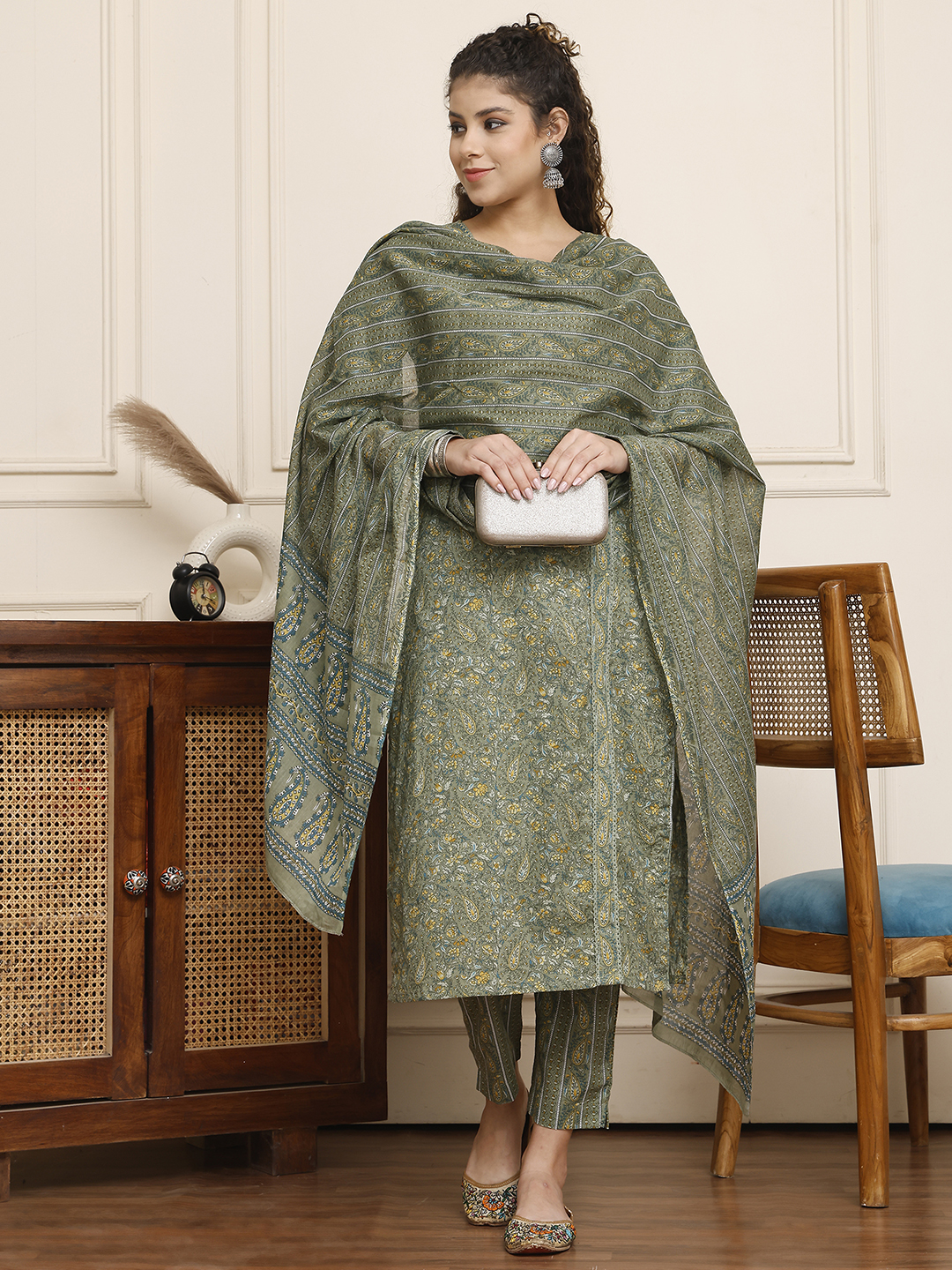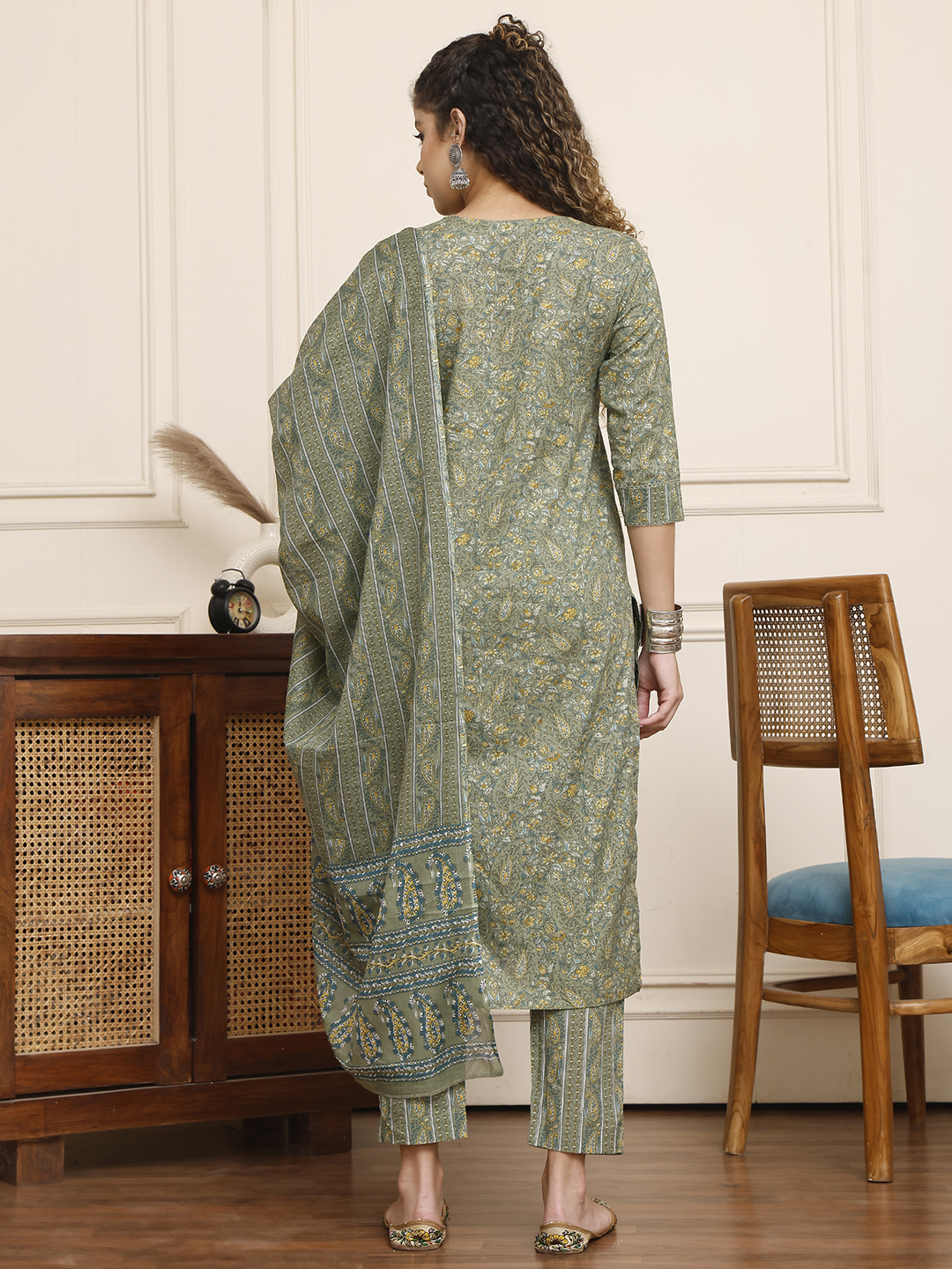 | Name : | Olive Green Printed 3 Piece Suit Set |
