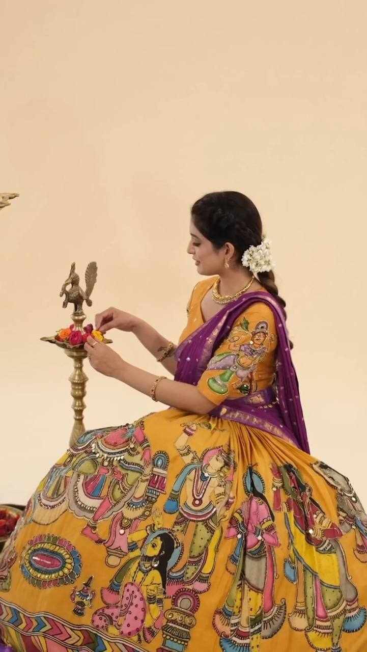 | Name : | Pc 450 Chent Crep kalamkari print Lehenga |