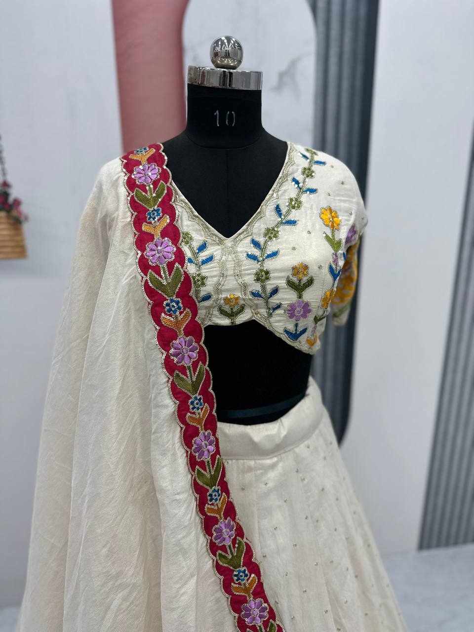 Name : PC 518 Tissue Simmer Silk Heavy Embroidery Sequence Work Lehenga