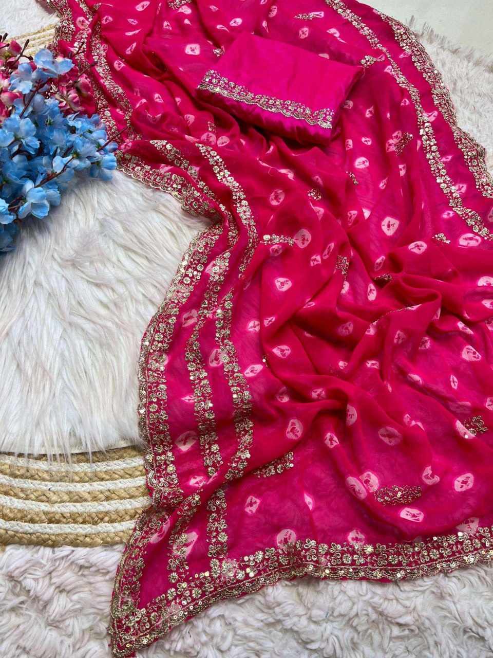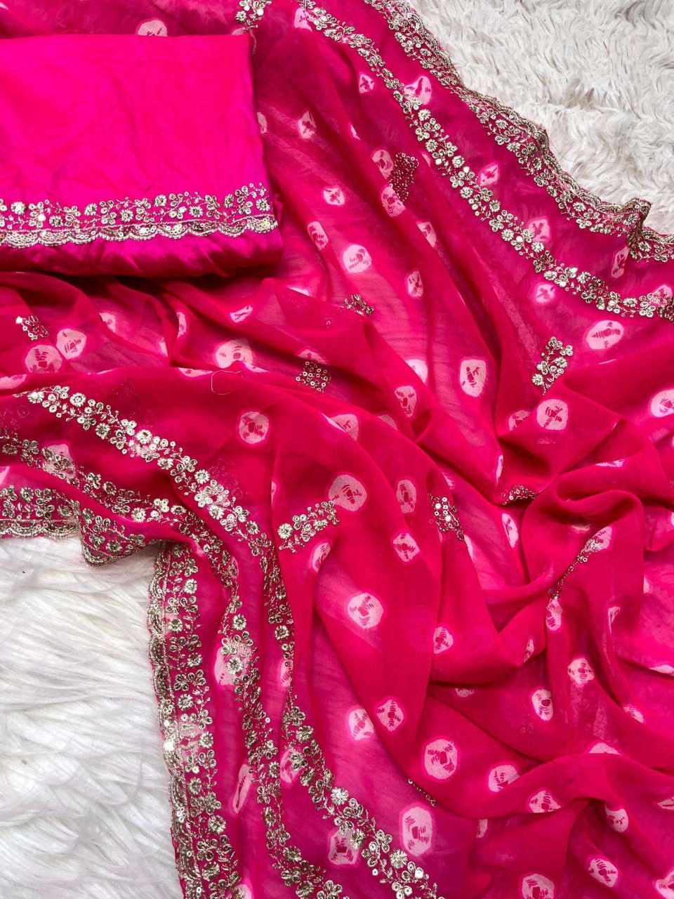 PIYU P1057 LEHERIYA COIN PINK SAREE