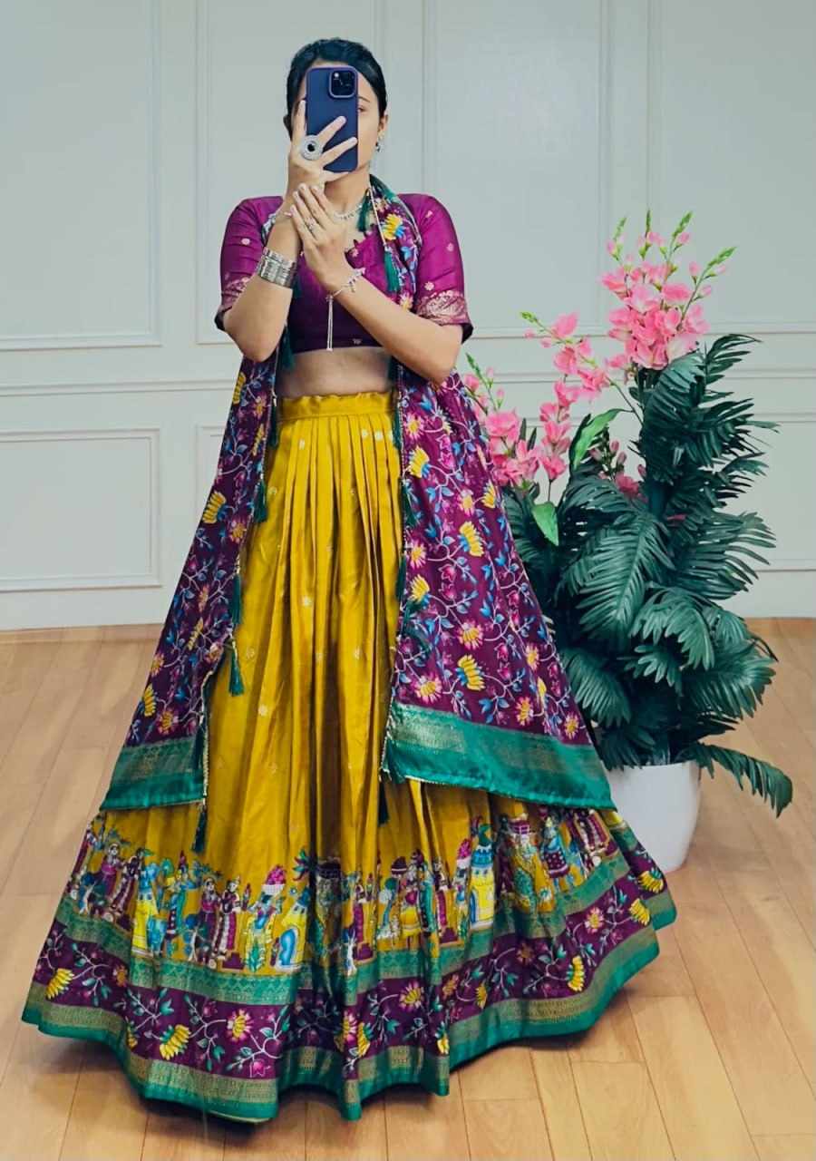 PIYU 10-2 Silk Chaniya Choli With Viving Foil Yellow Lehnga