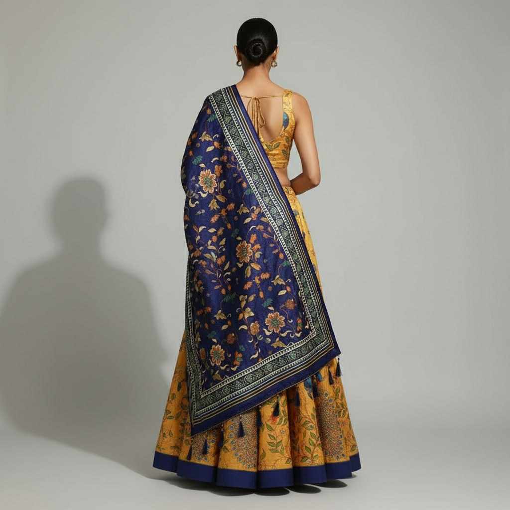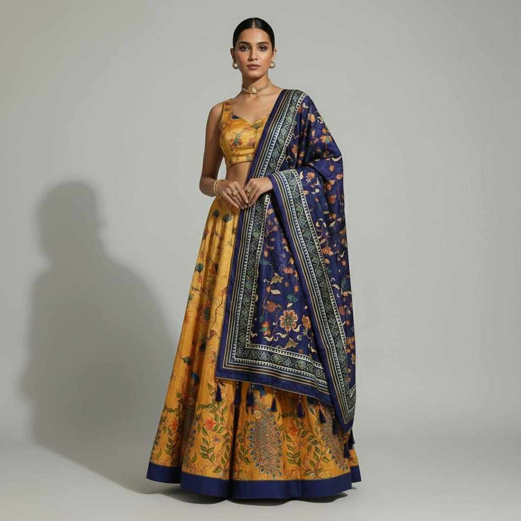 | Name : | PIYU 21-2 Silk Digital Print Yellow Lehnga |