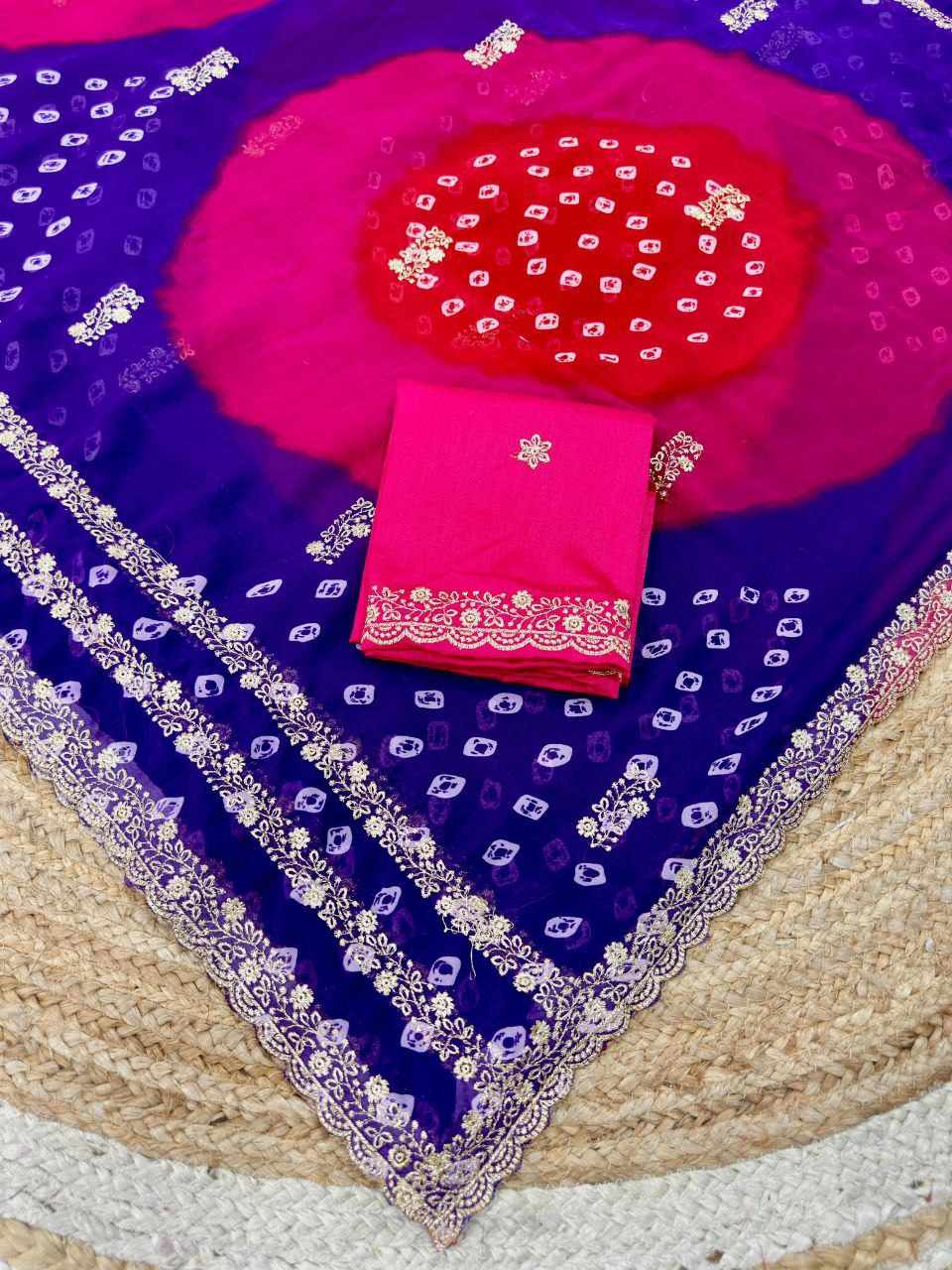 PIYU P1051 LEHERIYA BANDHANI-3 Purple Saree