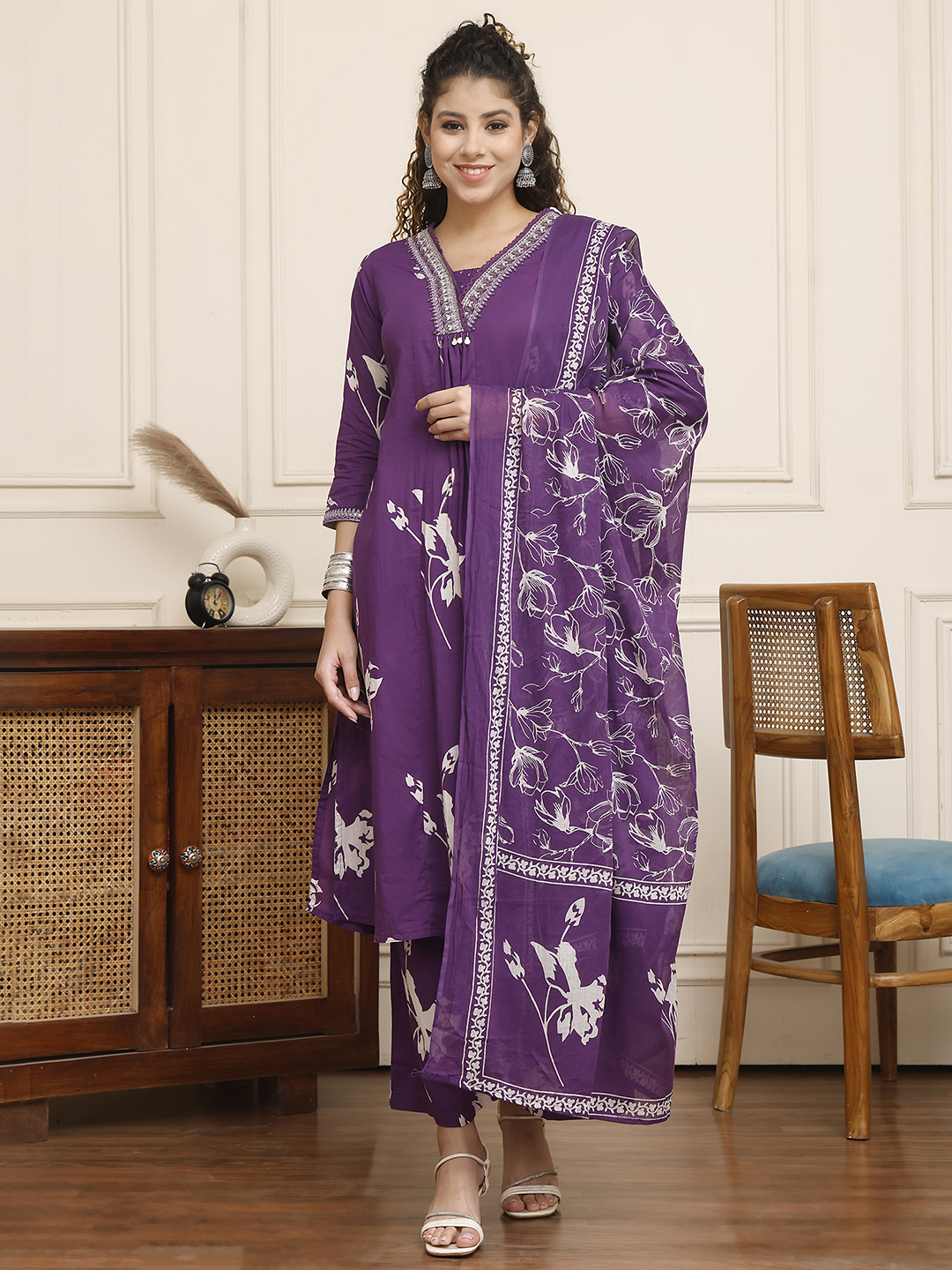 Top Fabric: 100% Cotton, printed + Machine Embroidery and hand work on neck, fully stitched
