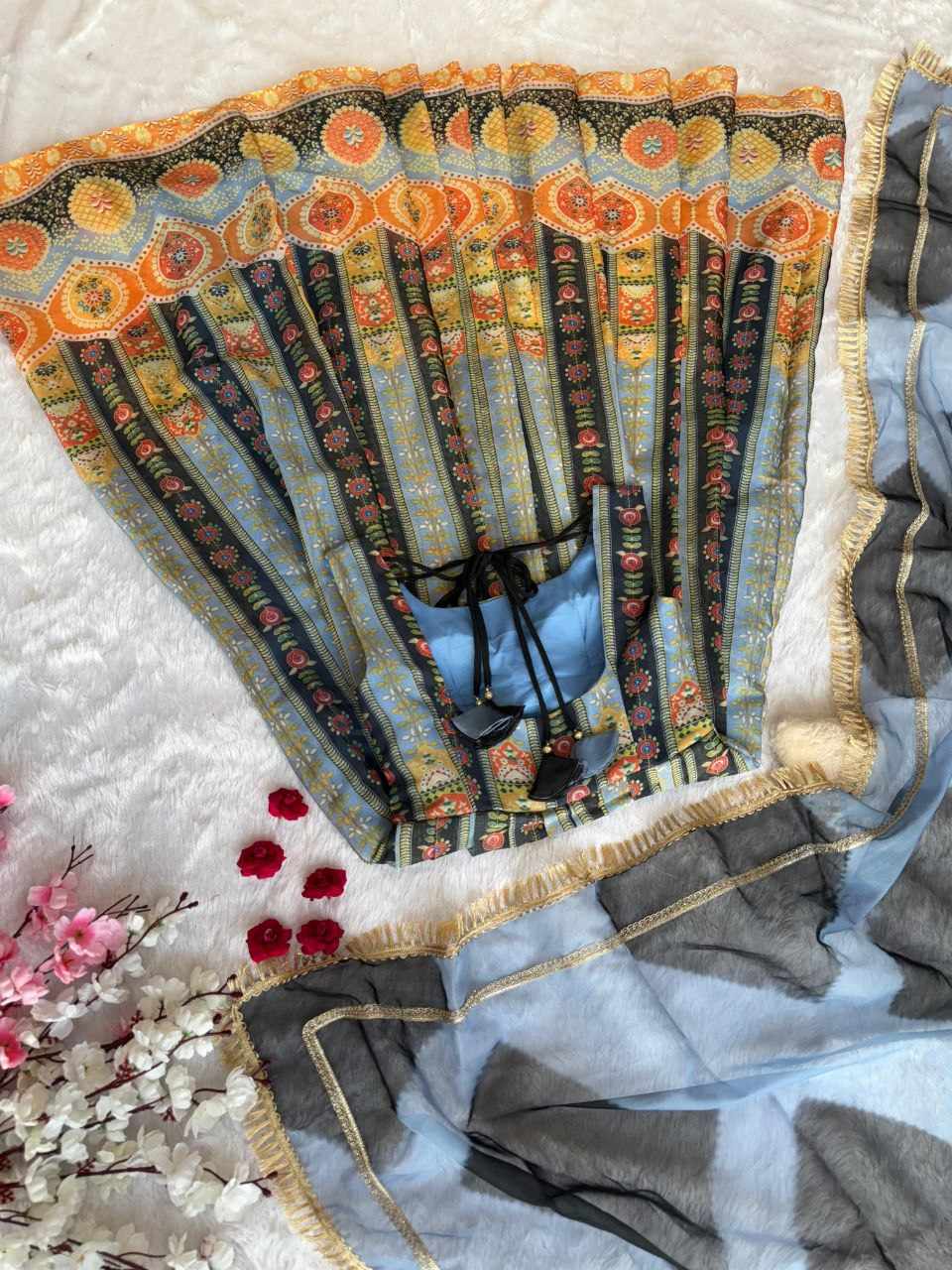 Anarkali Gown – Digital printed Jimmy Organza Silk Anarkali suit featuring a luxurious huge flair for an elegant, flowy look